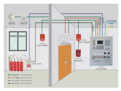 七氟丙烷气体灭火系统是一种高效、快速、环保的灭火方式,作为灭火介质,其灭火剂在平时以液体、液化气体或气体的形式存储在压力容器内。在灭火时,这些灭火剂以气体(包括蒸汽、气雾)的形式喷射出来,这种系统能在防护区的空间内形成各方向均一的气体浓度,并且至少能维持这种灭火浓度达到规范规定的浸溃时间,从而扑灭该防护区的空间、立体火灾。